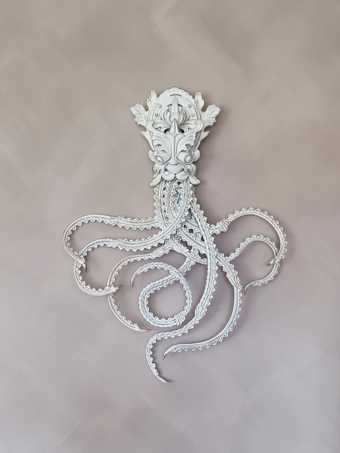 White octopus metal wall sculpture